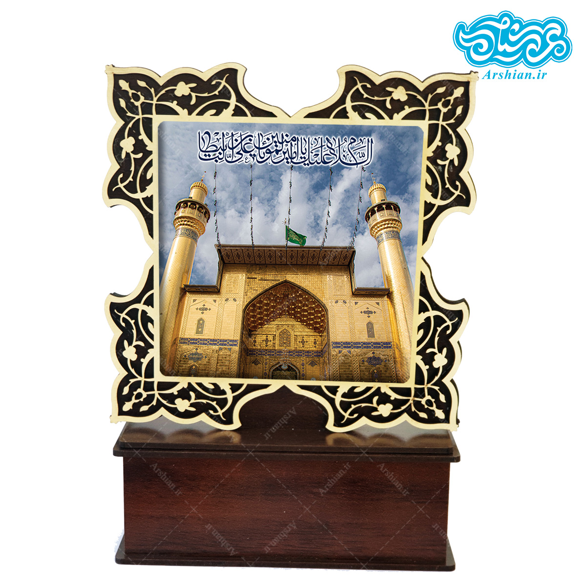 تندیس کاشی با طرح ایوان طلای امیرالمومنین با قاب چوبی کد tal111