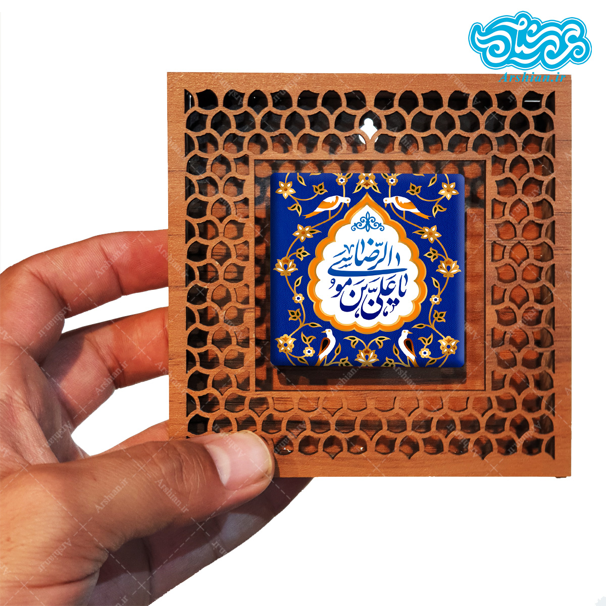 قاب کاشی دور مشبک با طرح یا علی بن موسی الرضا کد r102