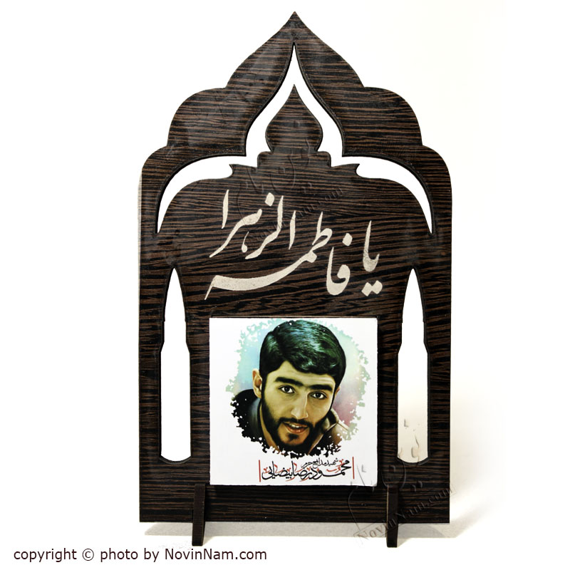 یک رومیزی مذهبی متشکل از کاشی و چوب. طرح چاپ شده بر روی کاشی از کیفیت رنگ و ظرافت مناسبی نسبت به نمونه های مشابه برخوردار است.
